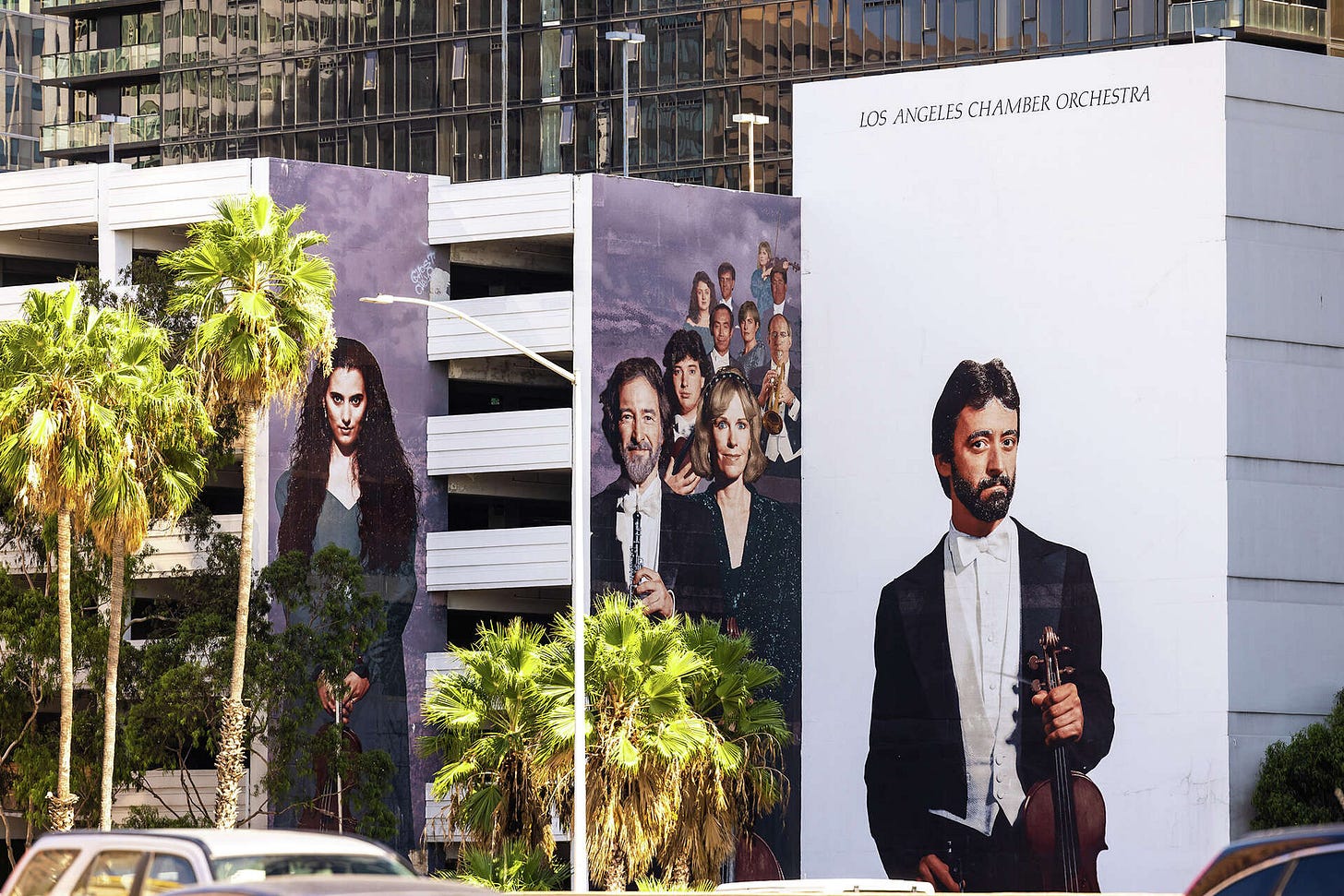 We drive through downtown past the now infamous LA Chamber Orchestra murals, somehow still standing despite the earthquake of 2034. Hell, it was probably the first thing they repainted. LA loves to show off how quickly they rebuild, be it with chicken wire and plaster or concrete, they’ll never let you forget “this is where Mickey Mouse comes from.”